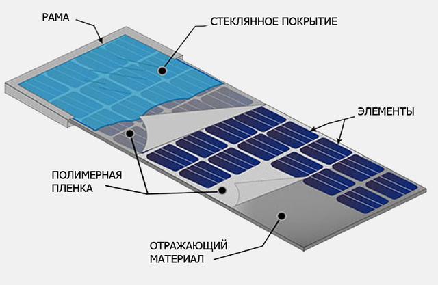 Головні складники сонячної панелі: